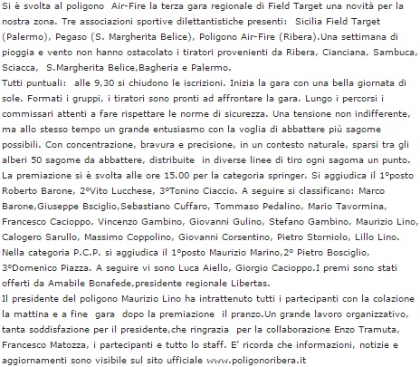 regionale di Field Target una novità per la nostra